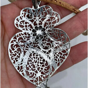 Vintage Womens Minimalist Filigree Vegan Choker Necklace Silver Tone Sz 8"
