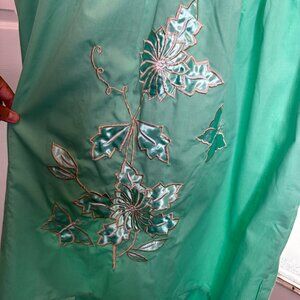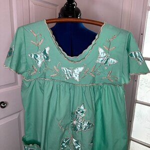 Vintage Women's Mint Green Nightgown Dress Floral Embroidered SEE MEASUREMENTS