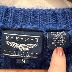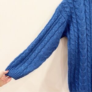 Vintage Womens Mohair Acrylic Cable Knit Sweater M Cobalt Blue Chunky Classic