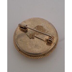 Vintage Women's. Mosaic Round Gold Tone Floral Flower Pin Brooch