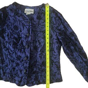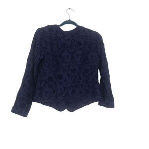 Vintage Womens Navy Blue Paisley Blazer Jacket Size 10 Business Chic Preppy