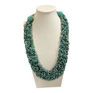 Women’s Necklace Seed Bead Bib Statement Teal Turquoise Multi 12” Length