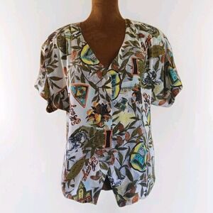 Vintage Women's Nicola Top Size M Graphic Leaf Print Shoulder Pads 90s Tropical