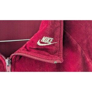 Vintage Women's Nike Burgundy Maroon Velour Warm Up Track Jacket Large