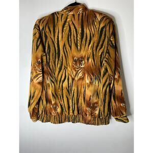 Vintage Draper's & Damon's Women's Orange Satin Striped Tiger Print Elastic Waist Zip-up Jacket 12