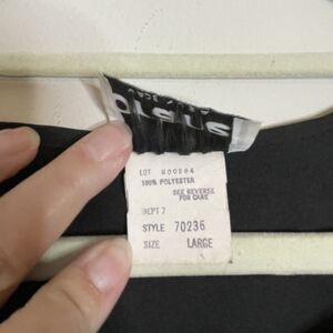 The Vintage Women's Orare Black Short Sleeve Blouse in Size Large is a classic and timeless piece made in the USA. This pullover blouse features a solid black color, round neckline, short sleeves, and a comfortable fit. Perfect for a business occasion, this retro-inspired top is lightweight and suitable for all seasons, making it a versatile addition to any wardrobe. The vintage appeal of this blouse, combined with its bohemian, 80s, and 90s themes, adds a unique touch to any outfit for a stylish and retro look.