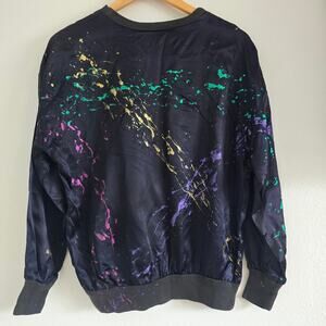 Vintage Womens Paint Splatter Black Satin Sweatshirt Size L made in USA