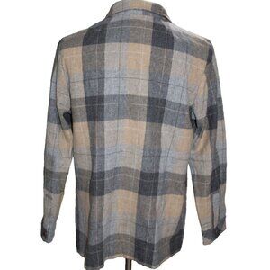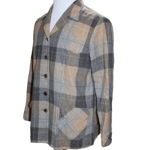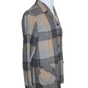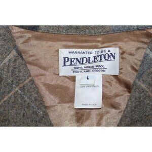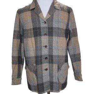 Vintage Women's Pendleton Heritage 49er Plaid Pocket Button Up Virgin Wool Jacket USA Brown and Gray Size Large. Nice vtg condition, there are a handful of teeny moth holes as pictured around the collar. The jacket is the perfect Fall/Winter chore barn jacket. Ready to wear. Measures 22" chest, 18" shoulders and 28" length. Smoke and pet free home. 50 9/9/2025