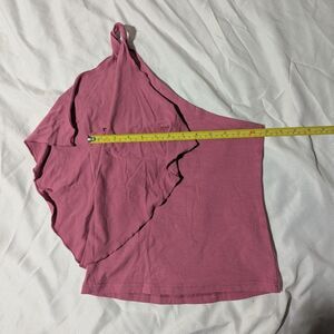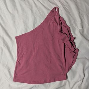 vintage Y2K Pink one shoulder ruffle top. Made of stretchy tshirt material. Bought in the 2000s. Adorable cut-away detail in the shoulder sleeve #glamour #y2kfashion #cottagecore #partytop #glam