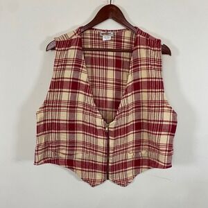 Vintage Womens Plaid Vest Zip Up Red Beige S La Femme Fall cottagecore academia