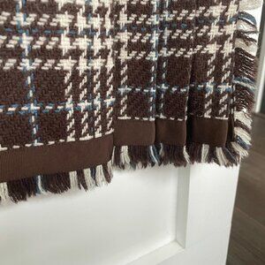 Vintage Womens Pleated Blue Brown Plaid 100%Wool Skirt Gross grain ribbon unique