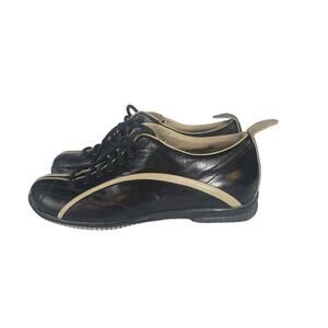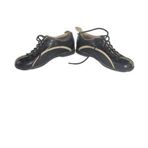 These fantastic trainers resemble bowling shoes! The leather upper and rubber sole are in great shape. These are a European size 36, which is the equivalent of US size 5.5. Made in Italy.