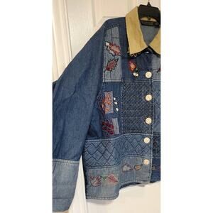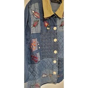 Vintage Womens Quilted Patchwork Denim Jacket Size 1X Embroidered Leaf Button Up. Condition is Pre-owned - Excellent. Shipped with USPS Ground Advantage.