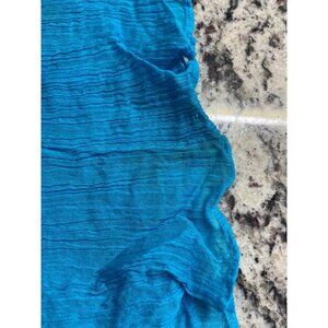 Vintage Womens Rectangle Scarf Blue White Embroidery Tassels Crinkled Boho Chic