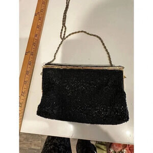 Vintage Women's Rectangle Shape Black Beaded Handbag Purse