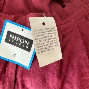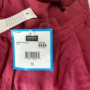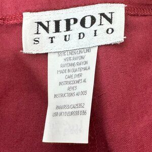 Vintage Women's Red Linen Blend Nipon Studio Pants. Great color. Tags were removed for cleaning. Linen rayon blend, made in Guatemala. Waist about 26, hip about 20, inseam - about 29.