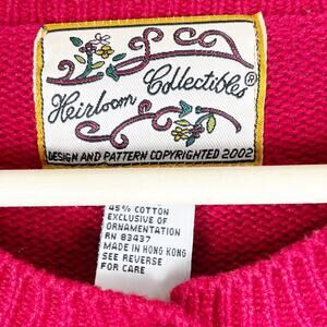 Vintage Women's Red White Blue Embroidered Granny Core Cardigan Sweater Size XL Americana Patriotic Holidays Christmas Valentines Day. In great preowned condition. Mady by Heirloom Collectibles. Blend of Ramie and Cotton. Front button. Hearts and stars. Minor signs of wear due such as a light spot on the back of the right arm (see photo). Front buttons that are covered. Measures about 26 inches from shoulder to hem and about 23 inches flat across the chest. Packaged with care.
