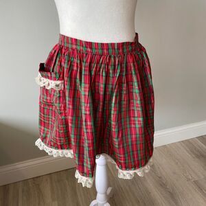Vintage Women's Red and Green Plaid Apron w/ Lace Trim Classic Holiday Christmas
