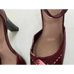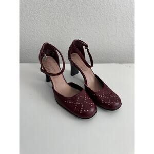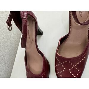 Vintage Women's Retro Highlights Maroon Leather Heel Sandal Size 6