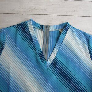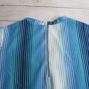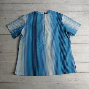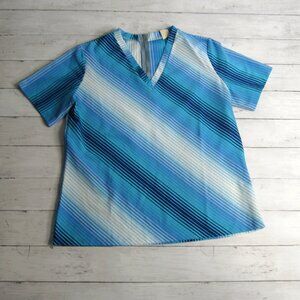 Vintage Women's Retro Short Sleeve Top Size M Blue White MCM V Neck Zipper