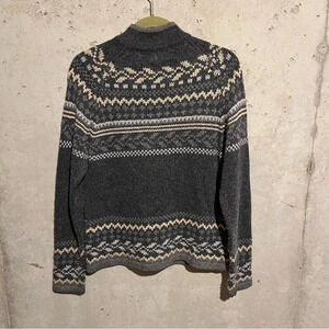 Vintage Women's S Sweater Fair Isle Wool Blend Mock Neck Zipper Cozy Grey
