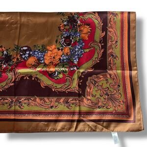 Scarf Brown Blue Red Orange Floral Print Made in Italy Vintage RN 13962
