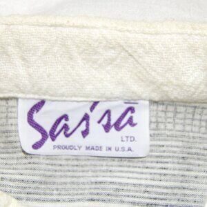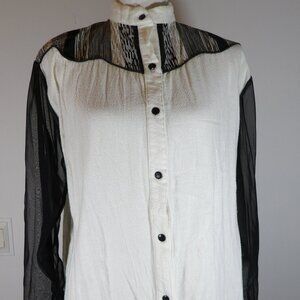 Vintage Women's Shirt Sas'sa Black and White with Sheer Black Sleeves L-XL