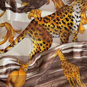 Vintage Women's Silk Scarf Wild Cheetah Tigers Deer Giraffe 38 x 40
