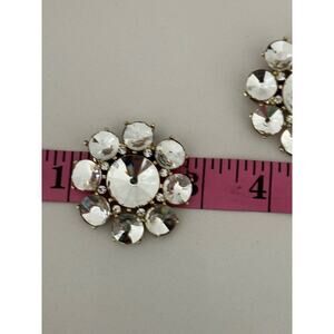 Vintage Women's Silver Rhinestone Rosette Stone Clip-on Earrings