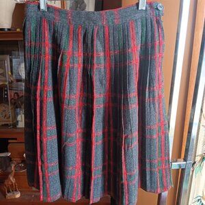 Vintage Women's Skirt Pleated 27W 1950s Shadow Plaid Sock Hop Wool Atomic 27" Sm