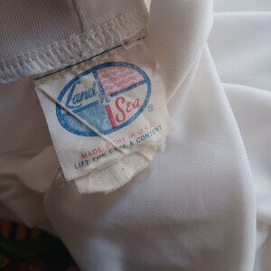 Vintage Women's Small Blouse Top 1970s White Secretary Tie Neck Stretch Granny