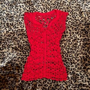 Vintage Women's Small Red Stretch Crochet Top. Tagless but fits like a Small and can stretch up to a Medium. Looks and feels vintage and handmade, still in good condition <3