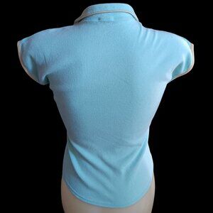 Vintage Women's Small Top 70's Disco Buttery Blue Fitted Cap Sleeve Keyhole