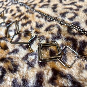 Vintage Women's Square Link Chain Belt. 2000s 00s era. Grey metal. Not adjustable, must be clipped in one spot, think it was formerly a necklace in its past life ~:) 39" around