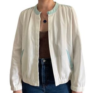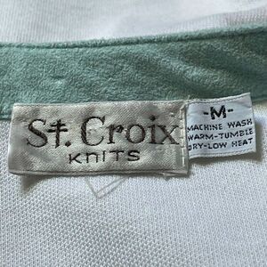 Vintage Womens St. Croix Knits White with Blue Suede Trim Cardigan Preppy Jacket