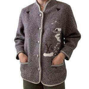 Vintage Womens Stapf Sportswear Tyrol Austrian Boiled Wool Ski Cardigan Sz M