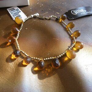 Vintage Women's Sterling Silver Bracelet w/ Dangling Amber Beads