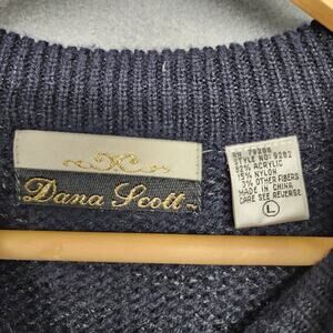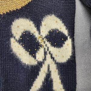 Vintage Womens Sweater Large Dana Scott Black Teal Holiday Embellished Tunic 90s