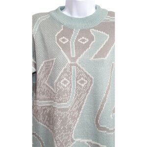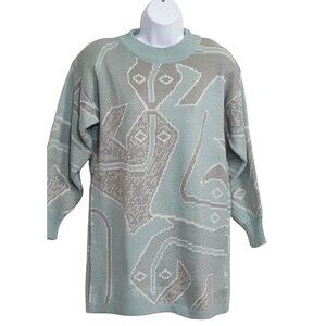 Vintage Womens Sweater Pullover Small Green Wool Acrylic Blend Southwest Native