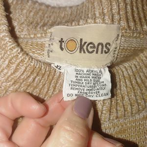 Vintage Women's Sweater Size Large XL Pullover Long Sleeve Crew Neck Tokens