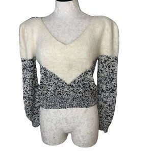 Vintage Womens Angora Mixed Knit Sweater Size Small Cream Black