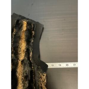 Vintage Womens Sweater Vest Medium Black Wool Blend Faux Fur Button Up Mob Wife