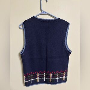 Vintage Womens Sweater Vest Navy Ice Skating Snowy Winter Scene Size Small 3D