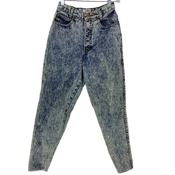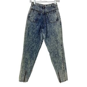 Vintage Women's Sz 24" 80's Tapered Leg Acid Wash Jean Ankle Zip Blue High Waist