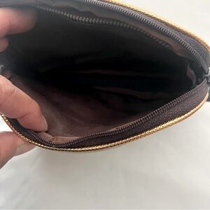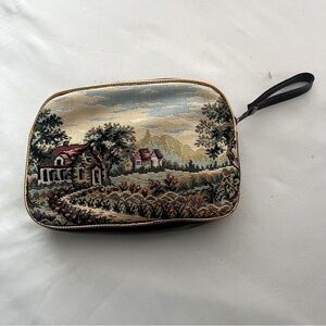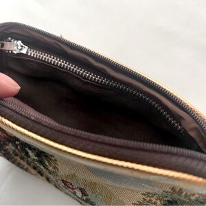 Vintage Women’s Tapestry Elegant Brown Clutch Wristlet Cottagecore Tiny Flaw Pic