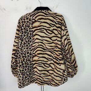 Vintage Womens Tiger Print Reversible Bomber Jacket Sz Large Tan Black Zip Front