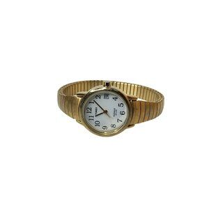 Vintage Womens Timex Indiglo WR30M Gold Tone Stretch Band Watch