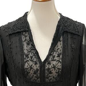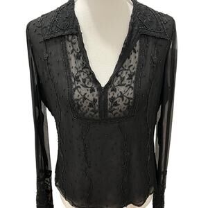 Vintage Womens Top 8 Y2K Blouse RARE Sheer Beaded Victorian 90s Elegant Boho
