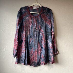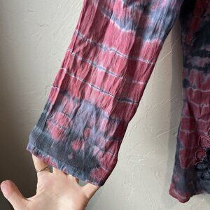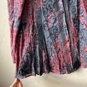 Vintage Women’s Top Embroidered Tie Dye Boho Fairy Whimisgoth Button Up Tunic