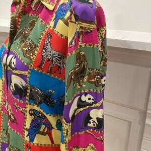 Vintage Womens Top Silk Medium Blouse Animal Safari Button down Shirt Medium